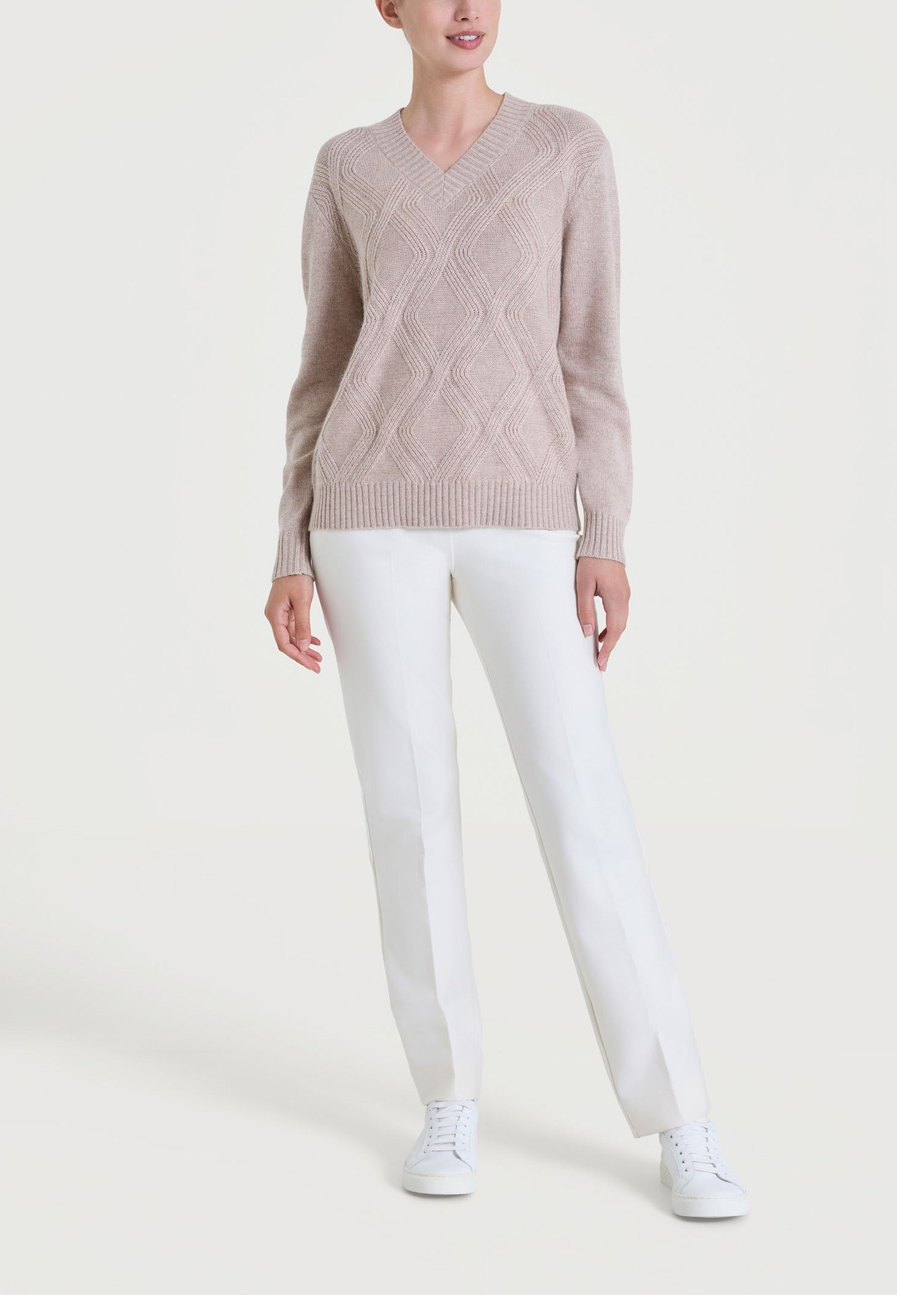 Questa maglia da donna firmata RAGNO unisce eleganza e comfort in un capo versatile e raffinato. Realizzata in un pregiato mix di viscosa, lana e angora, si distingue per la sua straordinaria morbidezza e calore, ideale per le stagioni più fredde. Il design presenta uno scollo a V che valorizza la silhouette con femminilità discreta, mentre la lavorazione a rombi aggiunge un tocco sofisticato e ricercato al look. Perfetta da indossare sia in contesti casual che in occasioni più formali, questa maglia è pensata per offrire stile e comodità senza rinunciare alla qualità dei materiali e alla cura dei dettagli.