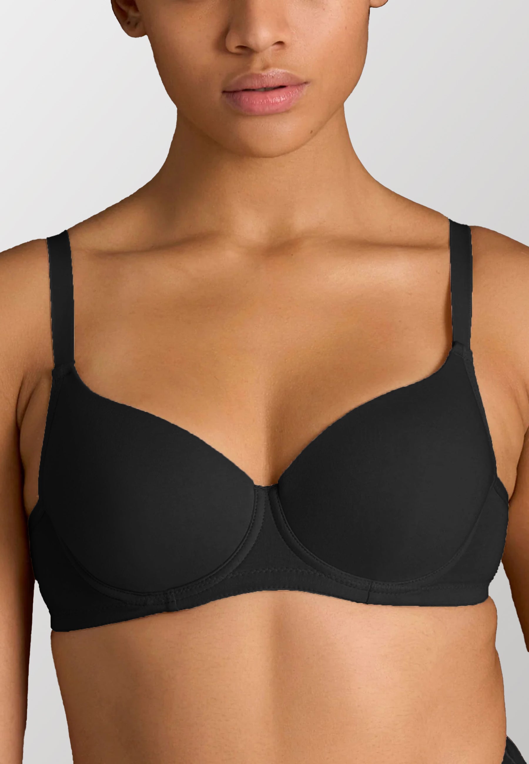 Reggiseno con imbottitura spacer traspirante e ferretto, realizzato in cotone elasticizzato extra fine. Offre supporto stabile e comfort grazie alle spalline regolabili e al design leggero che si adatta al seno senza aggiungere volume. Parte della linea beYOUtiful, celebra ogni donna con una vestibilità armoniosa e una gamma colori pensata per tutte le carnagioni.