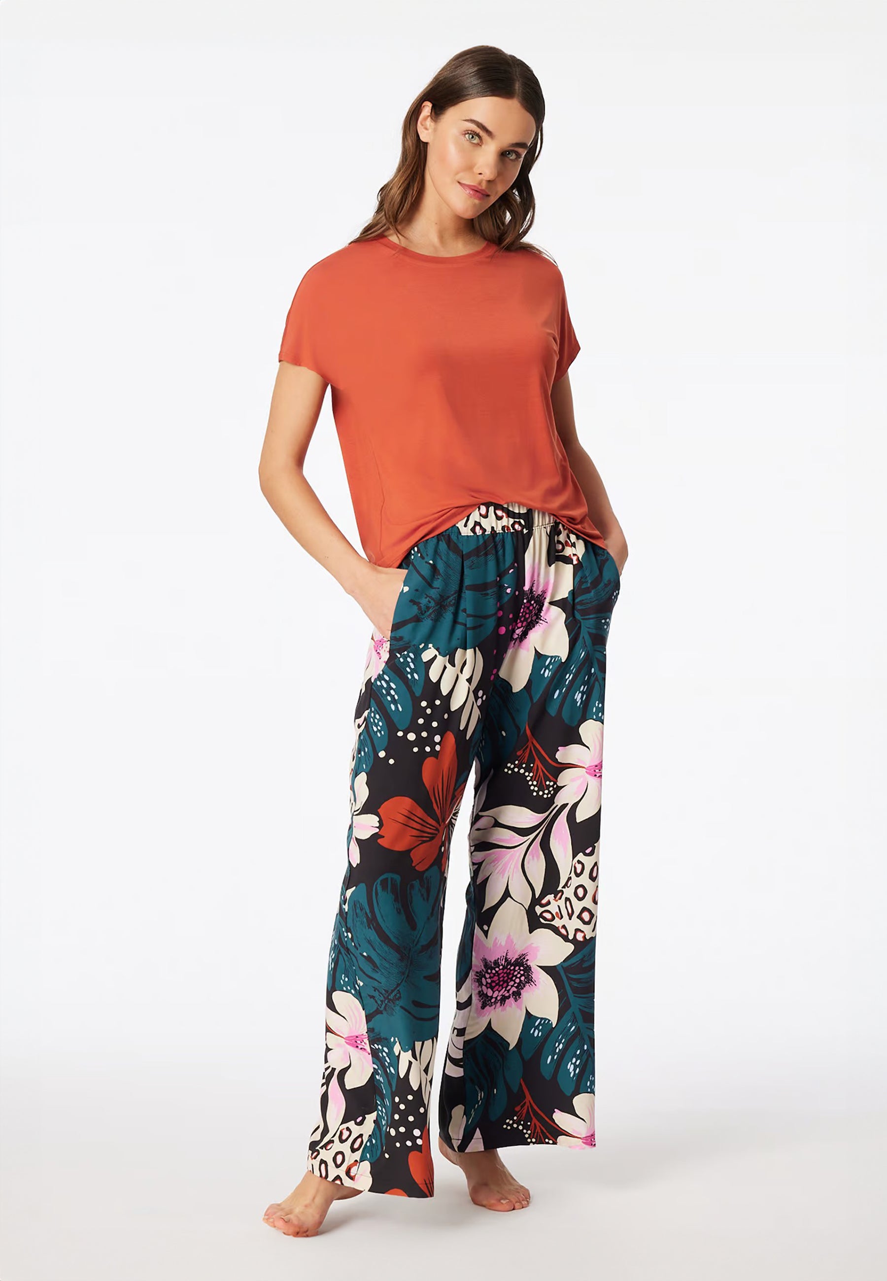 Questa maglietta donna Schiesser della linea Mix & Relax è pensata per offrire una sensazione di benessere costante durante tutta la giornata. Il tessuto in modal leggero si distingue per la sua morbidezza setosa e per l’elevata traspirabilità, risultando particolarmente piacevole a contatto con la pelle. La struttura a mezza manica e lo scollo a V valorizzano la linea del capo con discrezione, rendendolo adatto sia come t-shirt da indossare a vista sia come base confortevole sotto altri indumenti.