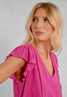 Scopri la T-Shirt donna a mezza manica con volants di MOLLY BRACKEN, un capo d'abbigliamento elegante e alla moda, pensato per la donna che desidera un look raffinato e contemporaneo. Realizzata in un tessuto morbido e leggero, tipo cupro viscosa, questa t-shirt offre una sensazione di comfort e freschezza. Il design semplice ma sofisticato, con volants sulle maniche, aggiunge un tocco di femminilità e movimento, perfetto per ogni occasione. Disponibile in tinta unita, questa T-Shirt è un must-have nel guardaroba di chi ama seguire le ultime tendenze senza rinunciare alla praticità. Indossala con i tuoi jeans preferiti o abbinala a una gonna per un outfit versatile e chic.