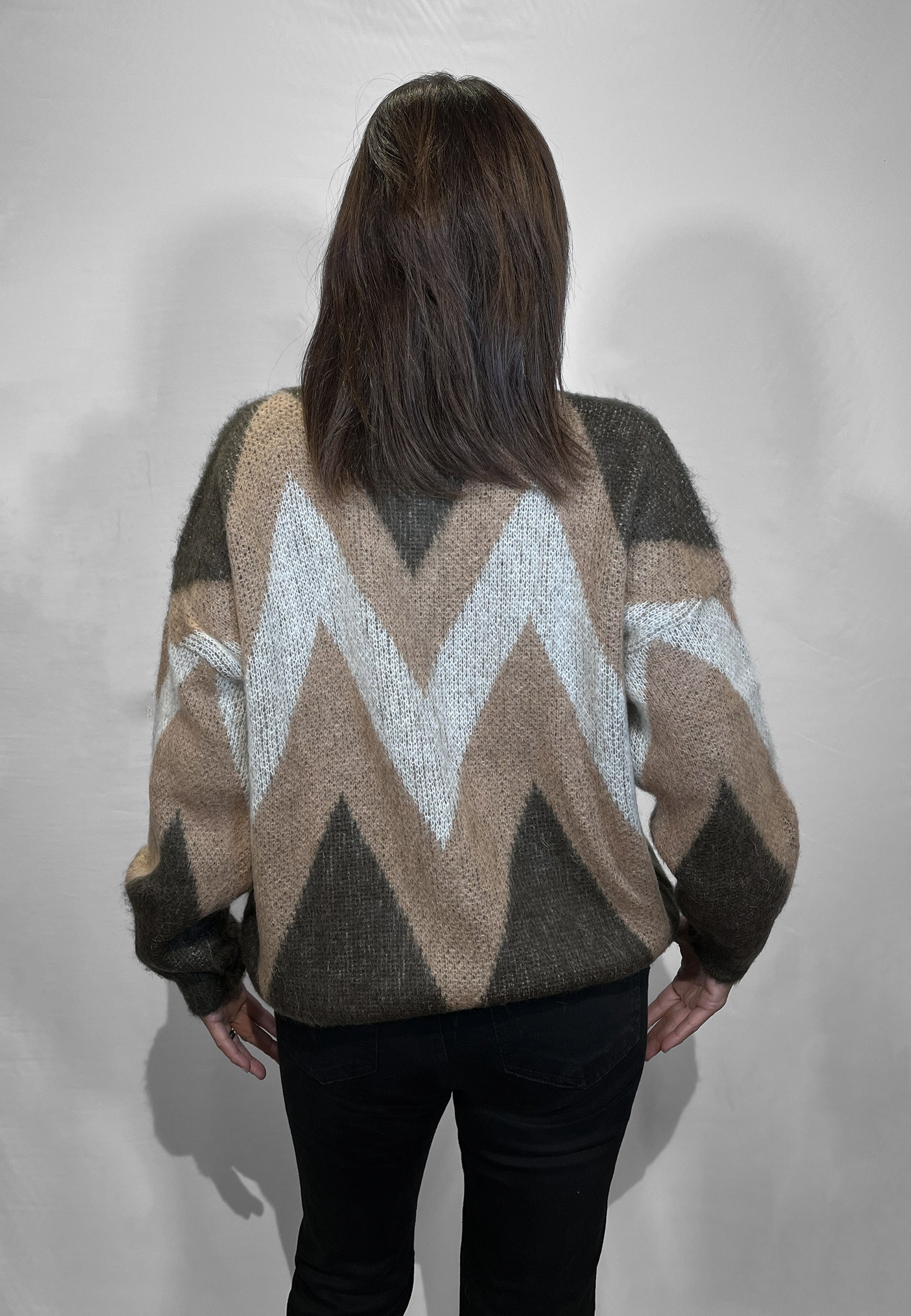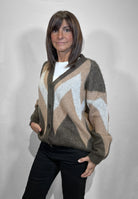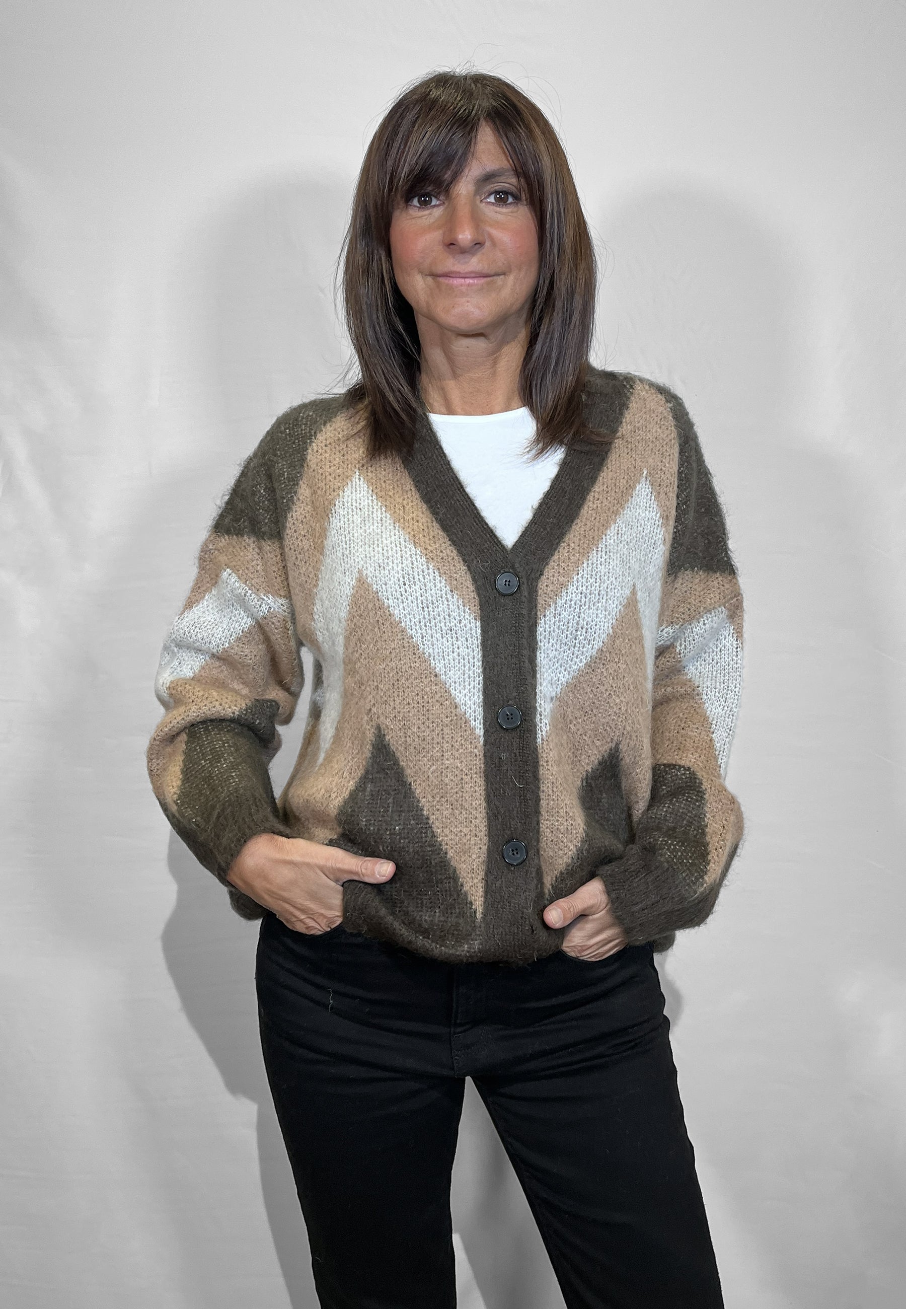 VICOLO Cardigan Donna Morbido Mohair Fantasia Zig Zag Invernale ART. 55116F