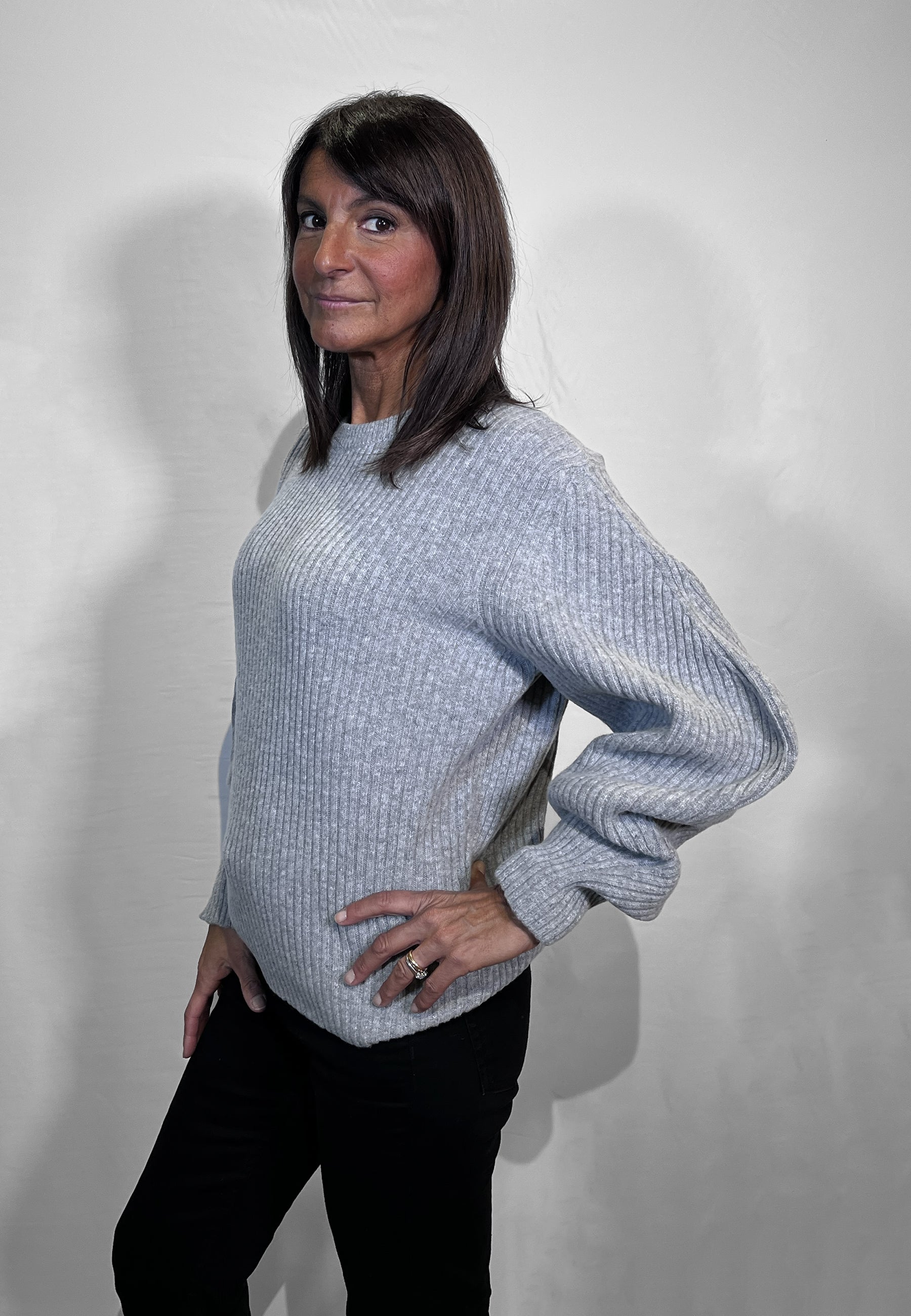 La maglia Vicolo da donna in costa inglese è un capo caldo e avvolgente, perfetto per la stagione autunno inverno. Realizzata con un'alta percentuale di lana, offre un comfort naturale e una piacevole sensazione di calore anche nelle giornate più fredde. La particolare lavorazione a costa inglese dona struttura al tessuto, mentre la manica a palloncino aggiunge un tocco femminile e di tendenza. La vestibilità morbida la rende ideale da abbinare a jeans, pantaloni sartoriali o gonne in maglia per creare outfit casual chic. Una maglia donna invernale pensata per chi desidera un capo moderno, caldo e di qualità.