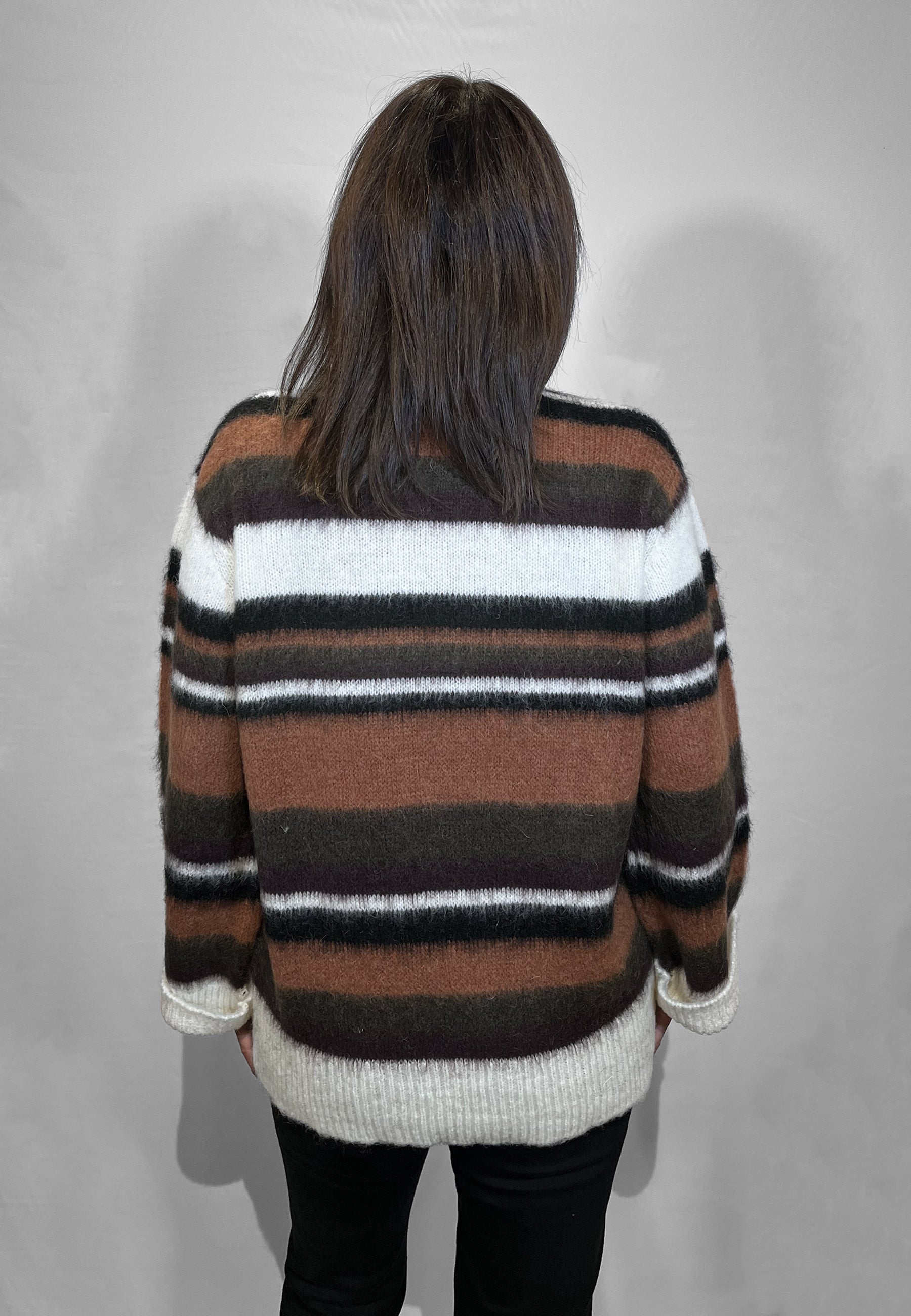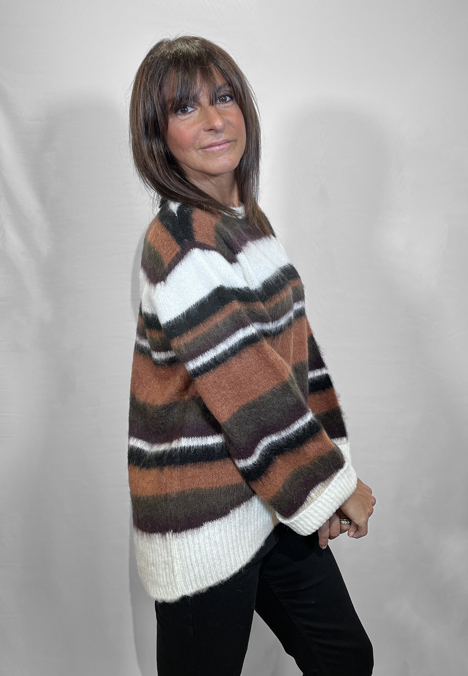 VICOLO Maglia Donna Morbida Mohair Rigata Calda Invernale ART. 55142F